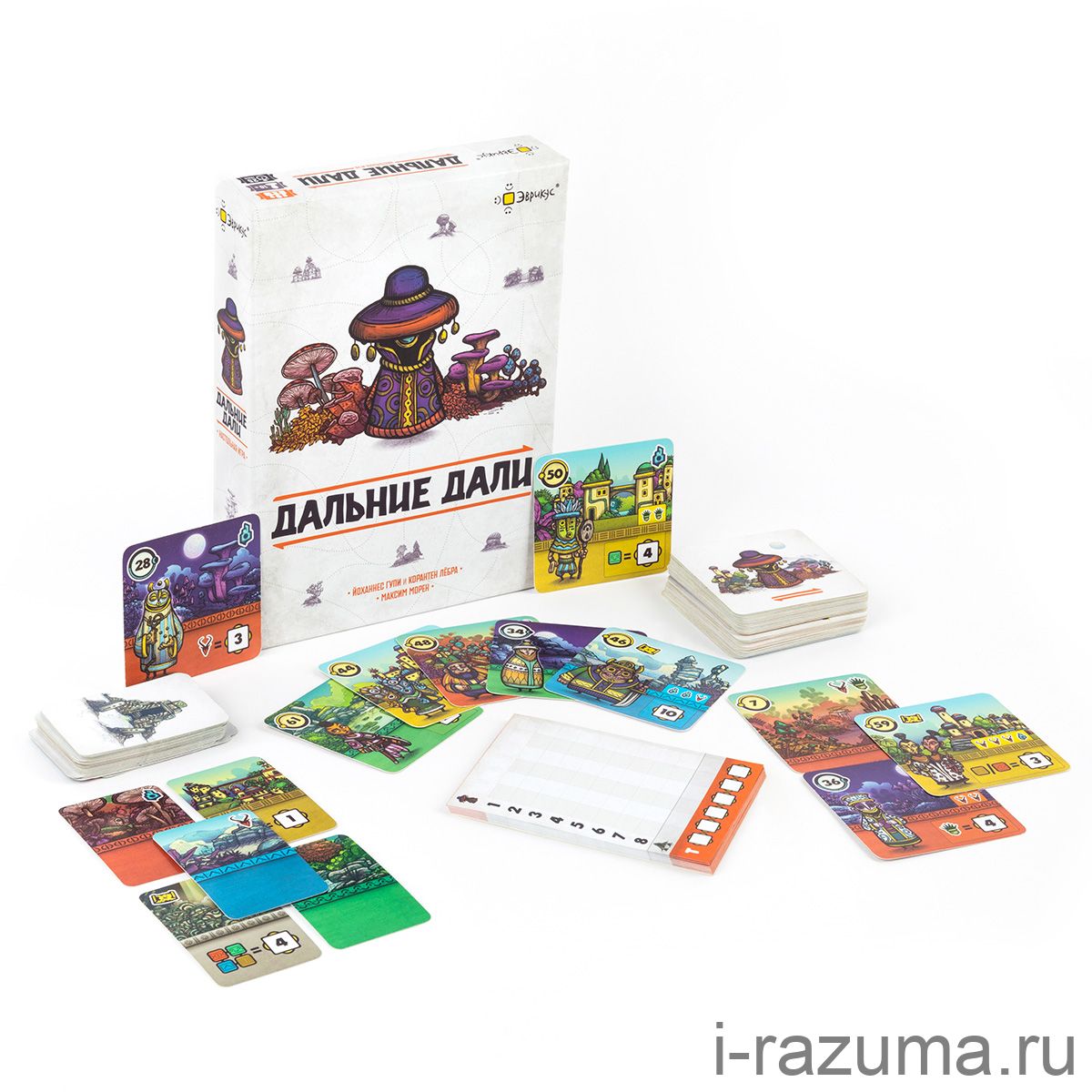 «Дальние дали» — это необычная карточная игра, простая и сложная одновременно. Вы познакомитесь с удивительным континентом Алула, придуманным создателями игры. Вы разыграете перед собой 8 карт, показывающих ваш путь и встреченных вами жителей, которые дают вам задания на поиск определенных ресурсов. Карты вы выкладываете последовательно слева направо, а подсчёт очков в конце игры ведётся справа налево - вы возвращаетесь назад и жители, чьё задание вы выполнили, награждают вас — придётся хорошенько подумать.