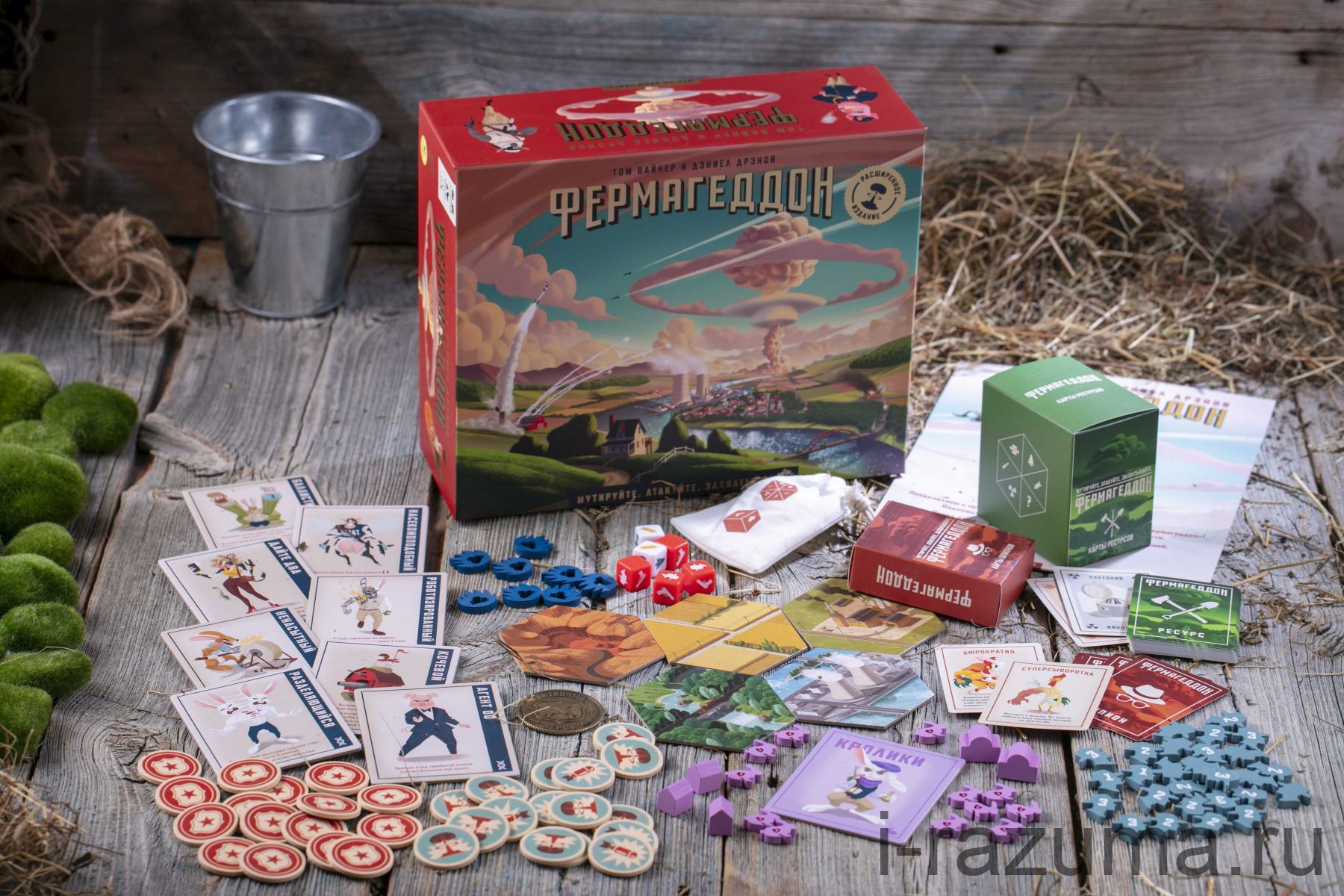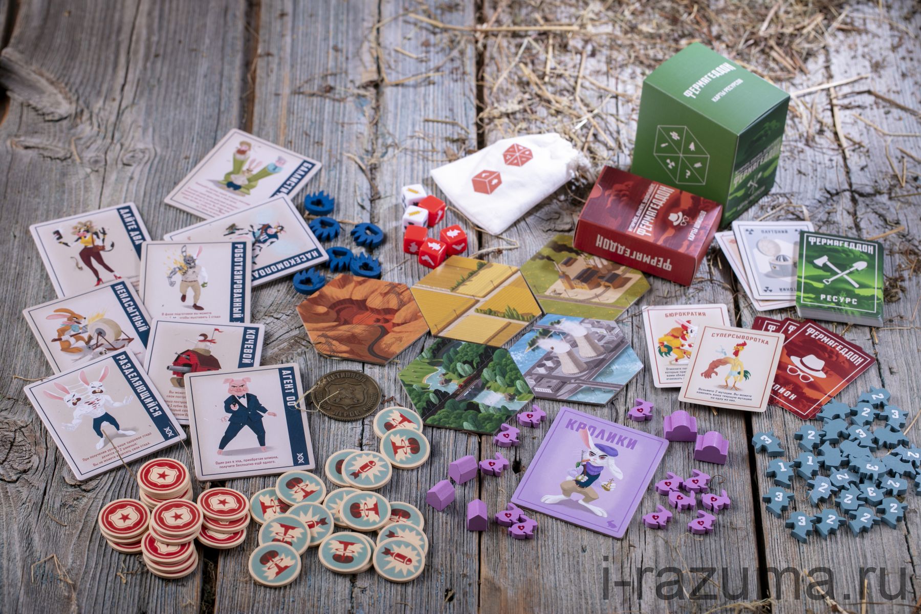 «Фермагеддон» идейно продолжает традицию культовых «Колонизаторов» — гениально сбалансированной игры, в которой острое взаимодействие между игроками идёт рука об руку с важными стратегическими решениями. Победа невозможна без сделок, блефа и конфликтов — но и без точного расчёта, выгодного строительства и контроля важных зон вам не выстоять.