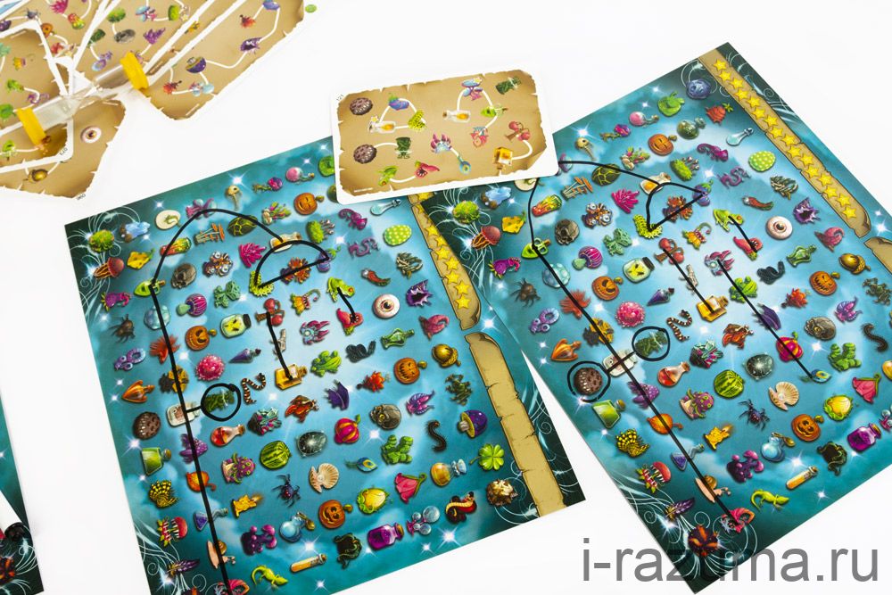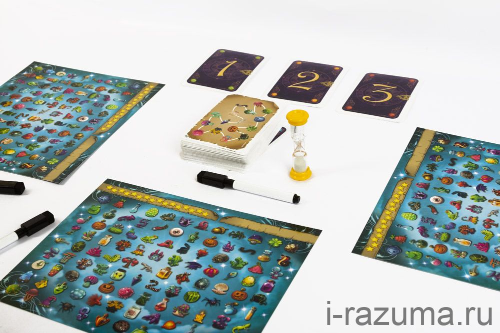 Все игроки получают одинаковый планшет с изображением магических ингредиентов и фломастер со стирающим колпачком.