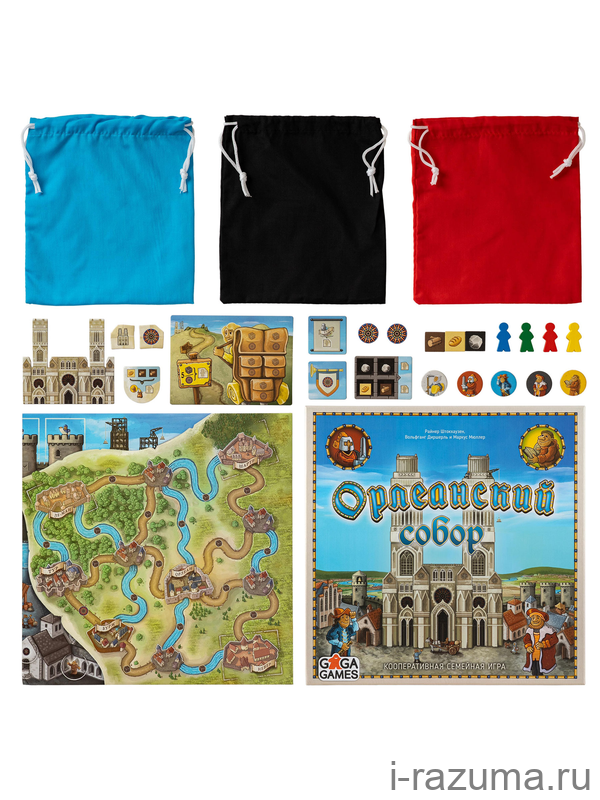 Важно запоминать, какие жетоны остались в мешочках, чтобы подданным хватало рабочих мест, иначе игра может завершиться неожиданно. Если успеете построить все восемь секций собора до конца третьего раунда, вы победите и станете лучшими зодчими Орлеана… а может, и всей Франции!
