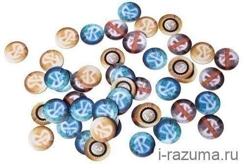 Помимо такого разнообразия оригинально оформленных карт в коробке вас ждут жетоны силы Ке (они помогут уследить за тем, сколько силы вы можете потратить на совершение магических действий) и жетоны напоминания с отрицательными и положительными значениями, которые пригодятся в случае использования специальных заклинаний, изменяющих стоимость заклинаний или количество карт на руке.
