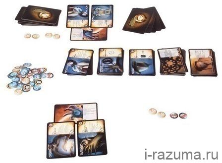 Помимо такого разнообразия оригинально оформленных карт в коробке вас ждут жетоны силы Ке (они помогут уследить за тем, сколько силы вы можете потратить на совершение магических действий) и жетоны напоминания с отрицательными и положительными значениями, которые пригодятся в случае использования специальных заклинаний, изменяющих стоимость заклинаний или количество карт на руке.