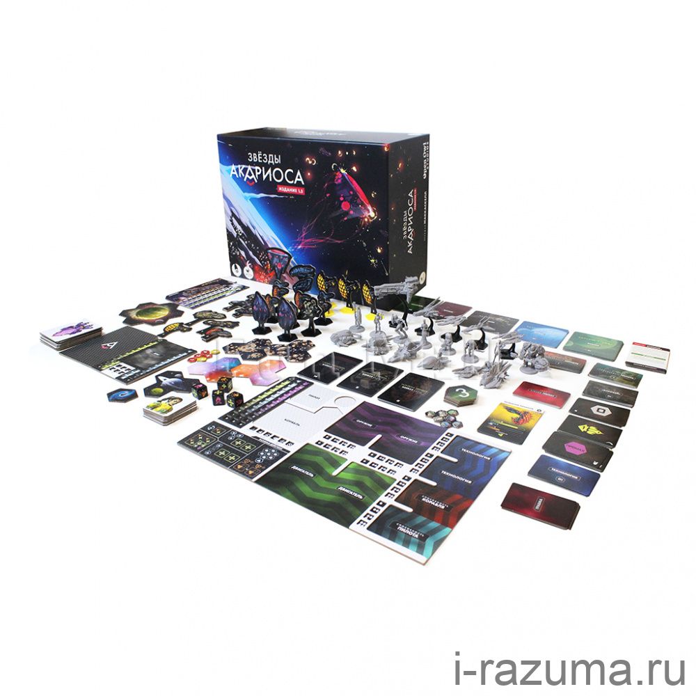 «Звёзды Акариоса» — кооперативная настольная игра для 1–4 игроков в жанре научной фантастики. Вы и ваши товарищи — пилоты, чудом спасшиеся с уничтоженной родной планеты. Теперь вам предстоит исследовать галактику Акариос, сражаться с врагами, раскрывать тайны и искать новый дом.